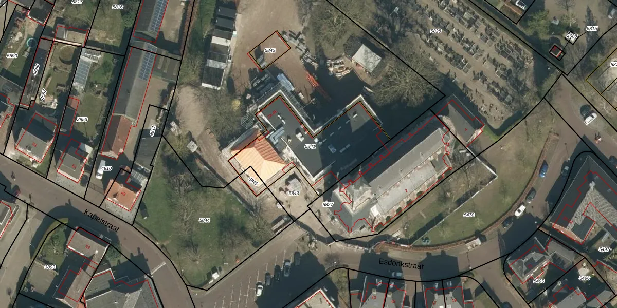Het perceel waarop Esdonkstraat 8-E staat heeft een oppervlakte van 845 m². Dit is een groot perceel. De perceeloppervlakte wordt geregistreerd door het Kadaster. Gedetailleerde informatie over de maten van dit perceel kunt u vinden in het rapport Kadastrale kaart met maatvoering van Esdonkstraat 8-E.