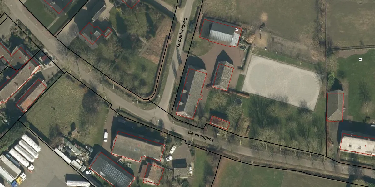 Het perceel waarop Grootdonkweg 1 staat heeft een oppervlakte van 8075 m². Dit is een zeer groot perceel. De perceeloppervlakte wordt geregistreerd door het Kadaster. Gedetailleerde informatie over de maten van dit perceel kunt u vinden in het rapport Kadastrale kaart met maatvoering van Grootdonkweg 1.