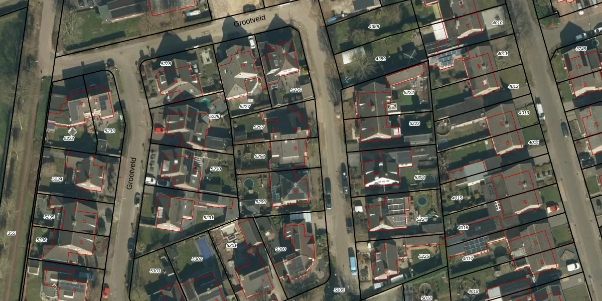 Het perceel waarop Grootveld 30 staat heeft een oppervlakte van 285 m². Dit is een middelgroot perceel. De perceeloppervlakte wordt geregistreerd door het Kadaster. Gedetailleerde informatie over de maten van dit perceel kunt u vinden in het rapport Kadastrale kaart met maatvoering van Grootveld 30.