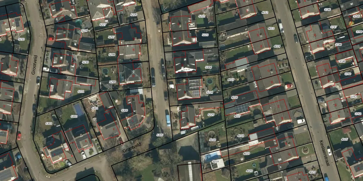 Het perceel waarop Grootveld 41 staat heeft een oppervlakte van 447 m². Dit is een groot perceel. De perceeloppervlakte wordt geregistreerd door het Kadaster. Gedetailleerde informatie over de maten van dit perceel kunt u vinden in het rapport Kadastrale kaart met maatvoering van Grootveld 41.