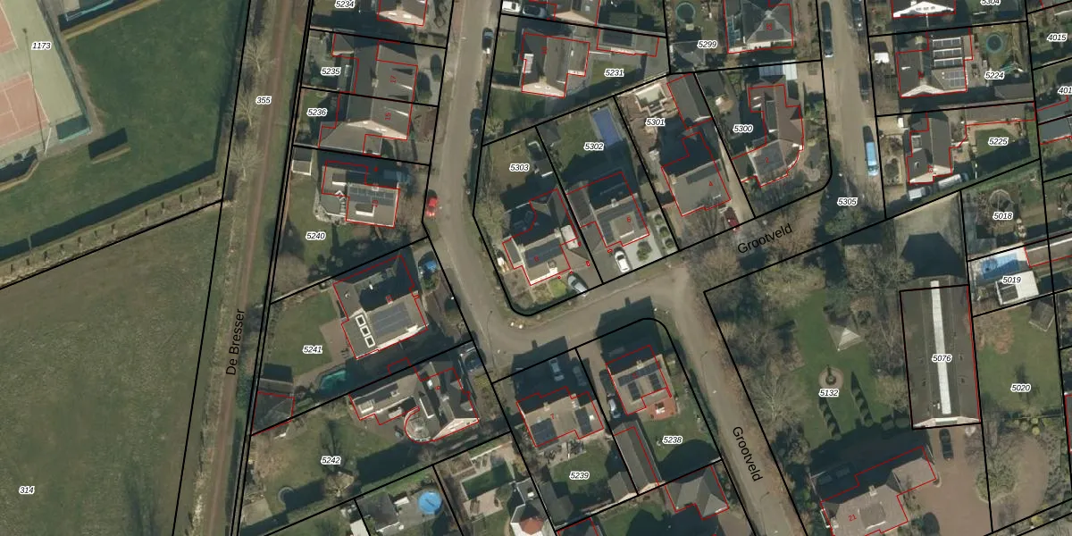 Het perceel waarop Grootveld 8 staat heeft een oppervlakte van 523 m². Dit is een groot perceel. De perceeloppervlakte wordt geregistreerd door het Kadaster. Gedetailleerde informatie over de maten van dit perceel kunt u vinden in het rapport Kadastrale kaart met maatvoering van Grootveld 8.