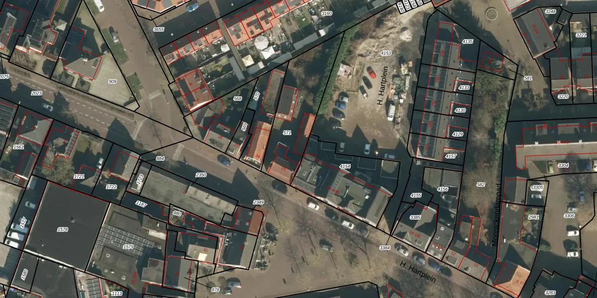 Het perceel waarop H. Hartplein 23-E staat heeft een oppervlakte van 620 m². Dit is een groot perceel. De perceeloppervlakte wordt geregistreerd door het Kadaster. Gedetailleerde informatie over de maten van dit perceel kunt u vinden in het rapport Kadastrale kaart met maatvoering van H. Hartplein 23-E.