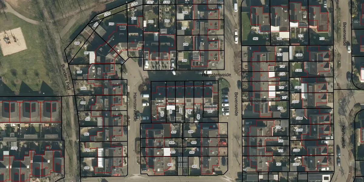 Gebruik de zoekbalk of klik op een perceel voor informatie over de adressen binnen dit perceel.