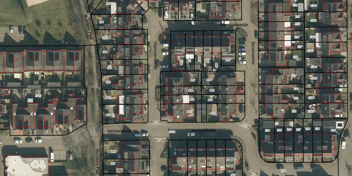 Hamsterweide 5 is gelegen op kadastraal perceel VHL00L904. Deze kadastrale aanduiding is uniek en wordt gebruikt door het Kadaster om eigendomsrechten en andere zakelijke rechten vast te leggen. Het perceel maakt onderdeel uit van de kadastrale gemeente Veghel.