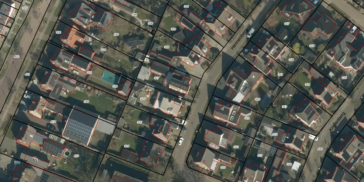Het perceel waarop Hennenberg 10 staat heeft een oppervlakte van 465 m². Dit is een groot perceel. De perceeloppervlakte wordt geregistreerd door het Kadaster. Gedetailleerde informatie over de maten van dit perceel kunt u vinden in het rapport Kadastrale kaart met maatvoering van Hennenberg 10.