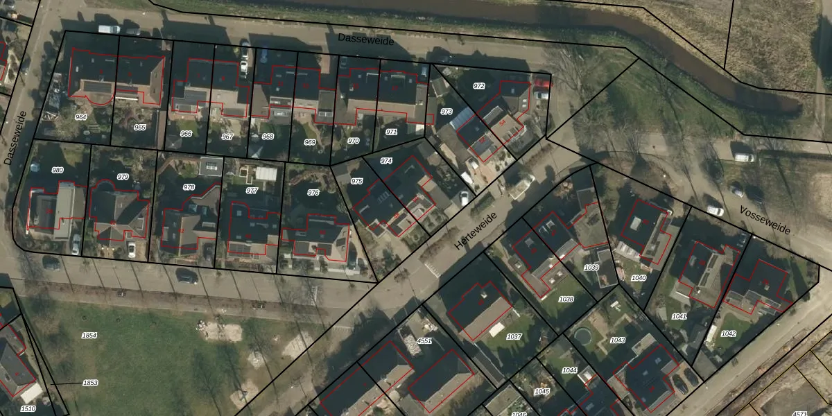 Het perceel waarop Herteweide 50 staat heeft een oppervlakte van 327 m². Dit is een groot perceel. De perceeloppervlakte wordt geregistreerd door het Kadaster. Gedetailleerde informatie over de maten van dit perceel kunt u vinden in het rapport Kadastrale kaart met maatvoering van Herteweide 50.