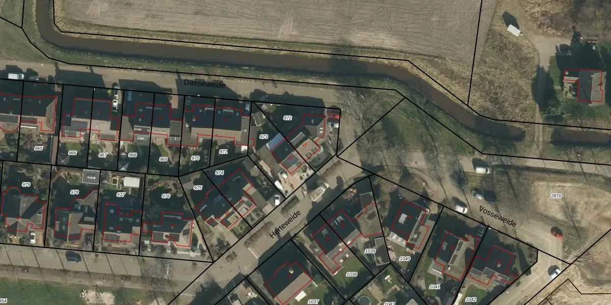 Herteweide 54 is gelegen op kadastraal perceel VHL00L972. Deze kadastrale aanduiding is uniek en wordt gebruikt door het Kadaster om eigendomsrechten en andere zakelijke rechten vast te leggen. Het perceel maakt onderdeel uit van de kadastrale gemeente Veghel.