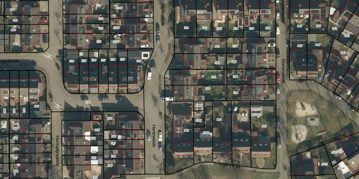 Herteweide 7 is gelegen op kadastraal perceel VHL00L740. Deze kadastrale aanduiding is uniek en wordt gebruikt door het Kadaster om eigendomsrechten en andere zakelijke rechten vast te leggen. Het perceel maakt onderdeel uit van de kadastrale gemeente Veghel.