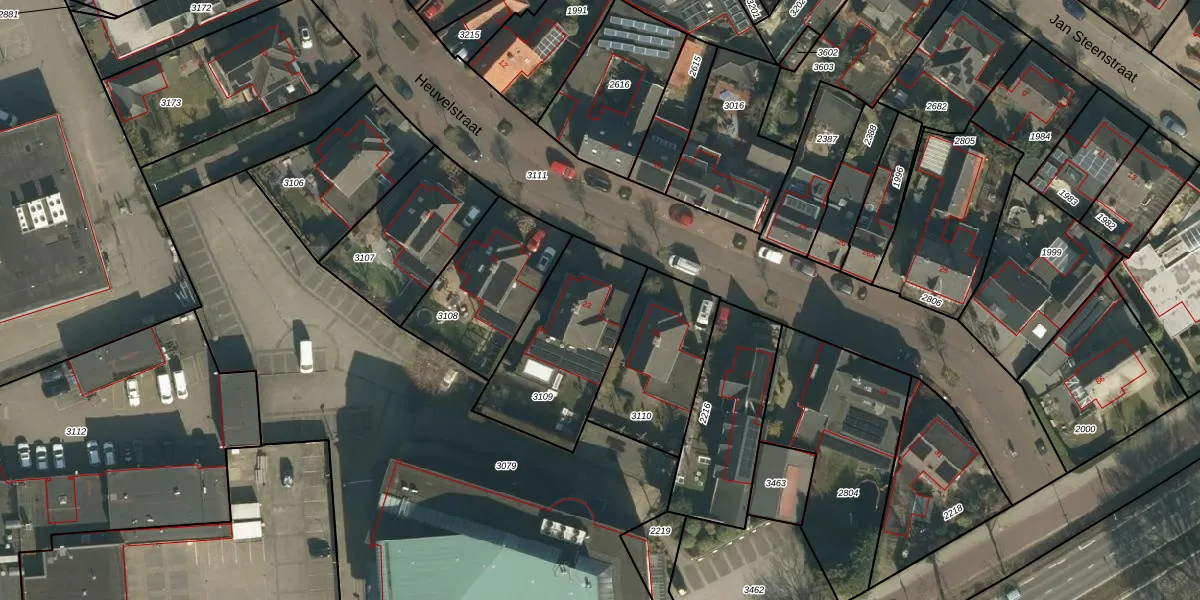 Gebruik de zoekbalk of klik op een perceel voor informatie over de adressen binnen dit perceel.