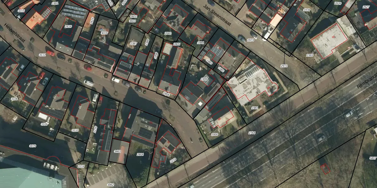 Het perceel waarop Heuvelstraat 30 staat heeft een oppervlakte van 476 m². Dit is een groot perceel. De perceeloppervlakte wordt geregistreerd door het Kadaster. Gedetailleerde informatie over de maten van dit perceel kunt u vinden in het rapport Kadastrale kaart met maatvoering van Heuvelstraat 30.