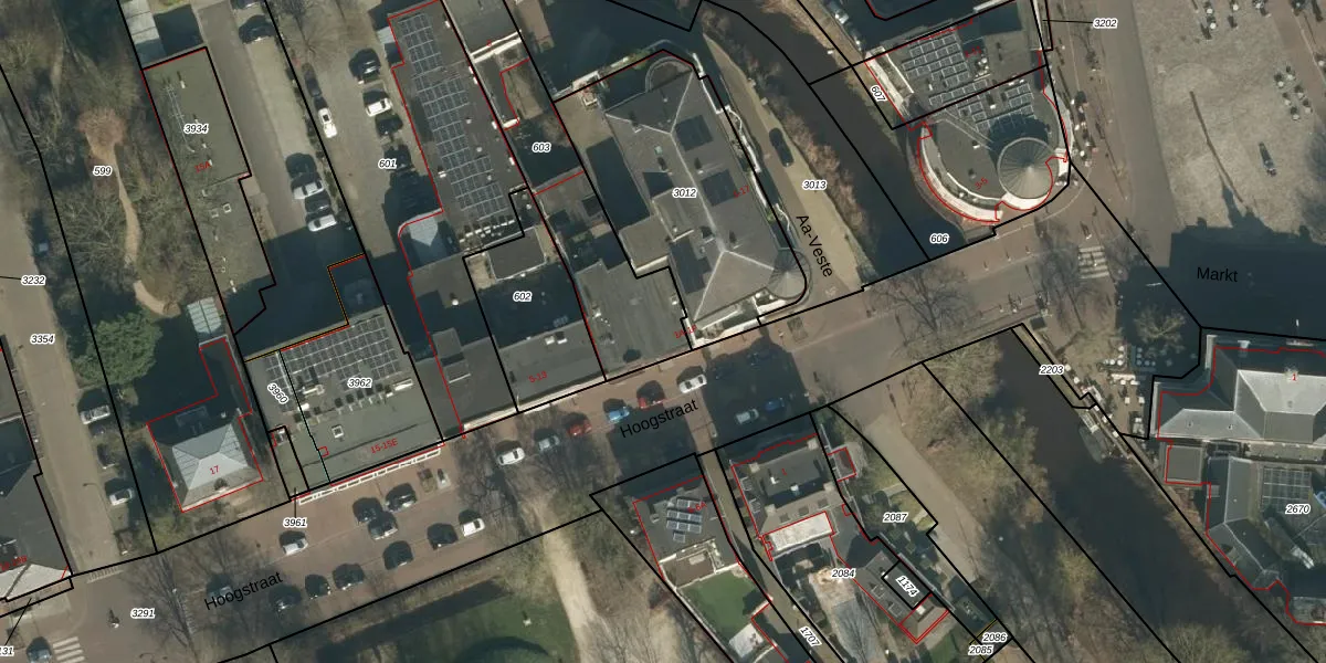 Het perceel waarop Hoogstraat 1-A staat heeft een oppervlakte van 715 m². Dit is een groot perceel. De perceeloppervlakte wordt geregistreerd door het Kadaster. Gedetailleerde informatie over de maten van dit perceel kunt u vinden in het rapport Kadastrale kaart met maatvoering van Hoogstraat 1-A.