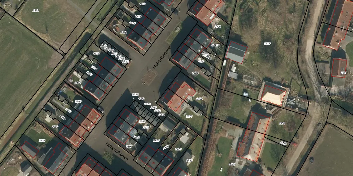 Gebruik de zoekbalk of klik op een perceel voor informatie over de adressen binnen dit perceel.