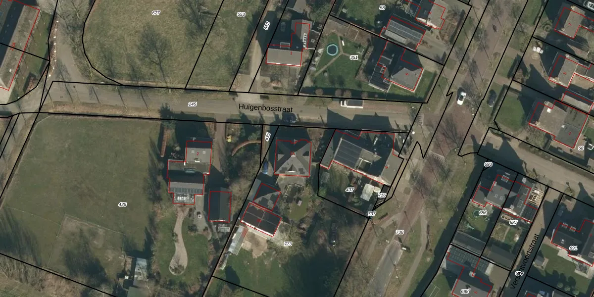Het perceel waarop Huigenbosstraat 2-A staat heeft een oppervlakte van 1902 m². Dit is een zeer groot perceel. De perceeloppervlakte wordt geregistreerd door het Kadaster. Gedetailleerde informatie over de maten van dit perceel kunt u vinden in het rapport Kadastrale kaart met maatvoering van Huigenbosstraat 2-A.