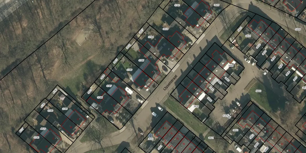 Het perceel waarop IJsselstraat 25 staat heeft een oppervlakte van 390 m². Dit is een groot perceel. De perceeloppervlakte wordt geregistreerd door het Kadaster. Gedetailleerde informatie over de maten van dit perceel kunt u vinden in het rapport Kadastrale kaart met maatvoering van IJsselstraat 25.