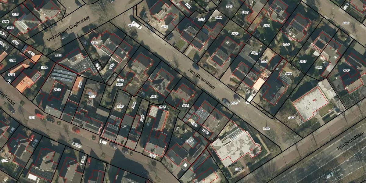 Het perceel waarop Jan Steenstraat 9 staat heeft een oppervlakte van 242 m². Dit is een middelgroot perceel. De perceeloppervlakte wordt geregistreerd door het Kadaster. Gedetailleerde informatie over de maten van dit perceel kunt u vinden in het rapport Kadastrale kaart met maatvoering van Jan Steenstraat 9.