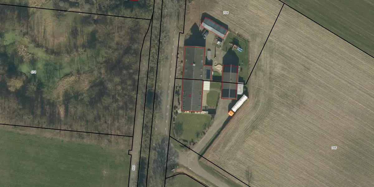 Het adres ligt op het perceel VHL00-P-705, dat zich in de kadastrale gemeente Veghel bevindt. Het perceel is met 1,5 ha relatief groot. Het gemiddelde ligt in de kadastrale gemeente Veghel op 2505,13 m². Het grootste perceel in de kadastrale gemeente is 27,6 ha. Het kleinste perceel heeft een oppervlakte van 0 m². Dit is het enige adres dat aanwezig is op het perceel. De laatste wijziging in het de Basisregistratie Kadaster (BRK) was op 22-10-2002.