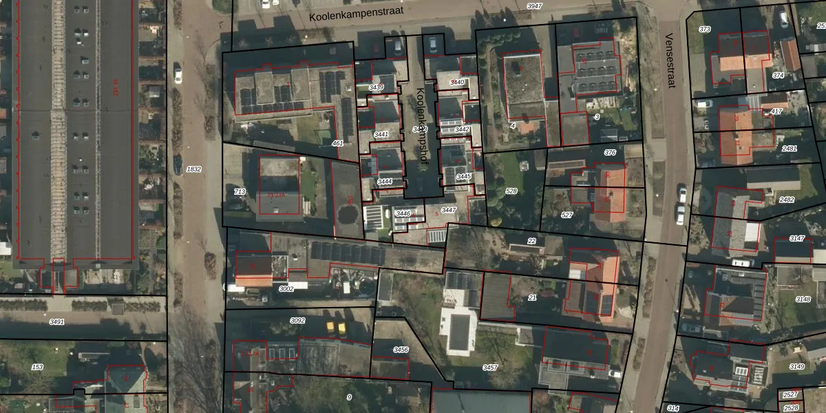 Gebruik de zoekbalk of klik op een perceel voor informatie over de adressen binnen dit perceel.