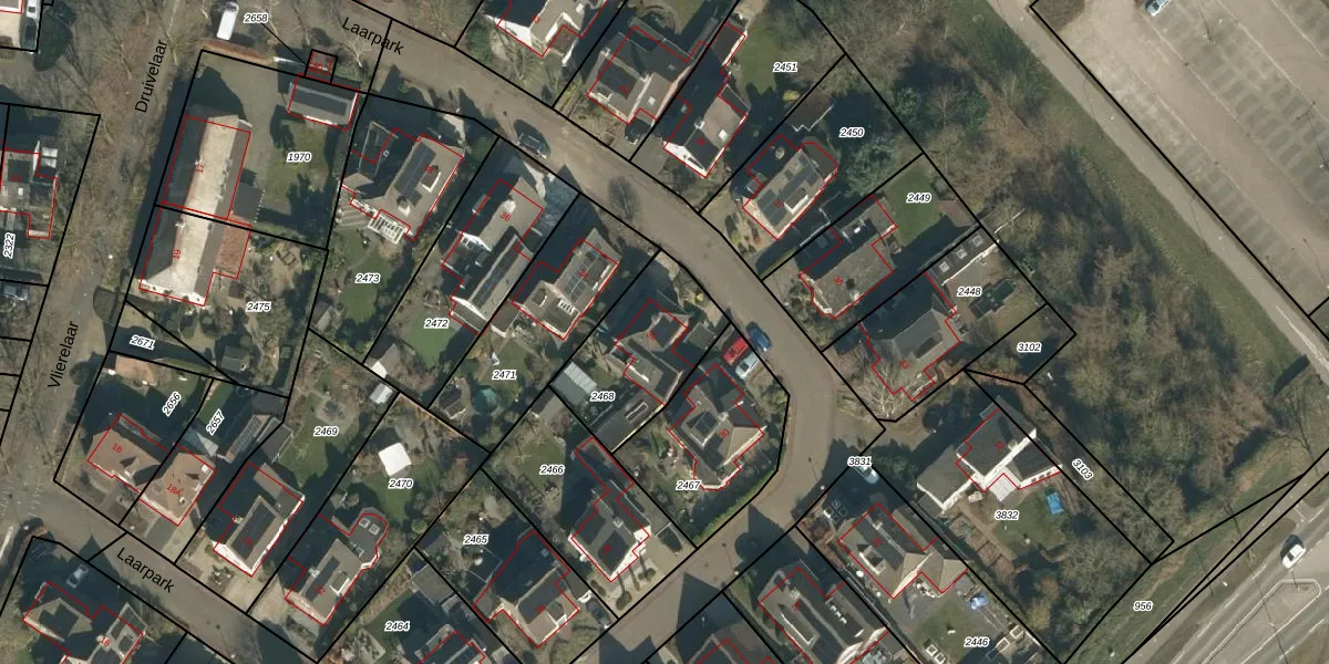 Het perceel waarop Laarpark 32 staat heeft een oppervlakte van 405 m². Dit is een groot perceel. De perceeloppervlakte wordt geregistreerd door het Kadaster. Gedetailleerde informatie over de maten van dit perceel kunt u vinden in het rapport Kadastrale kaart met maatvoering van Laarpark 32.