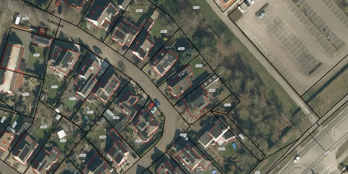 Het perceel waarop Laarpark 35 staat heeft een oppervlakte van 436 m². Dit is een groot perceel. De perceeloppervlakte wordt geregistreerd door het Kadaster. Gedetailleerde informatie over de maten van dit perceel kunt u vinden in het rapport Kadastrale kaart met maatvoering van Laarpark 35.