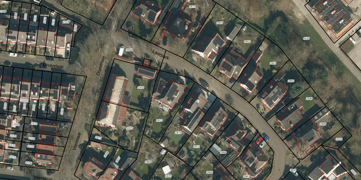 Laarpark 38 is gelegen op kadastraal perceel VHL00K2473. Deze kadastrale aanduiding is uniek en wordt gebruikt door het Kadaster om eigendomsrechten en andere zakelijke rechten vast te leggen. Het perceel maakt onderdeel uit van de kadastrale gemeente Veghel.