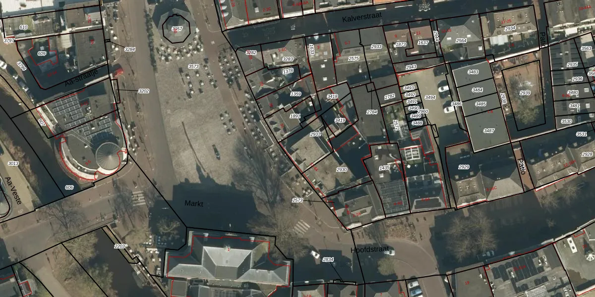 Het perceel waarop Markt 35 staat heeft een oppervlakte van 185 m². Dit is een middelgroot perceel. De perceeloppervlakte wordt geregistreerd door het Kadaster. Gedetailleerde informatie over de maten van dit perceel kunt u vinden in het rapport Kadastrale kaart met maatvoering van Markt 35.
