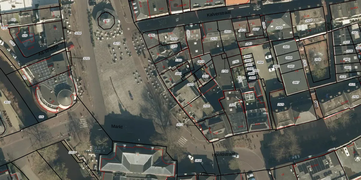 Het perceel waarop Markt 37 staat heeft een oppervlakte van 185 m². Dit is een middelgroot perceel. De perceeloppervlakte wordt geregistreerd door het Kadaster. Gedetailleerde informatie over de maten van dit perceel kunt u vinden in het rapport Kadastrale kaart met maatvoering van Markt 37.