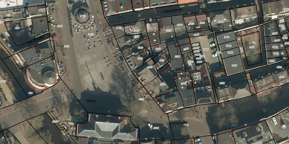 Het perceel waarop Markt 41 staat heeft een oppervlakte van 185 m². Dit is een middelgroot perceel. De perceeloppervlakte wordt geregistreerd door het Kadaster. Gedetailleerde informatie over de maten van dit perceel kunt u vinden in het rapport Kadastrale kaart met maatvoering van Markt 41.