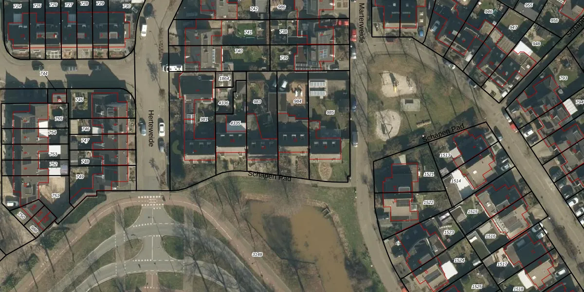 Het perceel waarop Marterweide 11 staat heeft een oppervlakte van 389 m². Dit is een groot perceel. De perceeloppervlakte wordt geregistreerd door het Kadaster. Gedetailleerde informatie over de maten van dit perceel kunt u vinden in het rapport Kadastrale kaart met maatvoering van Marterweide 11.