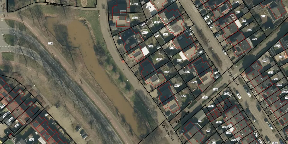 Het perceel waarop Marterweide 22 staat heeft een oppervlakte van 278 m². Dit is een middelgroot perceel. De perceeloppervlakte wordt geregistreerd door het Kadaster. Gedetailleerde informatie over de maten van dit perceel kunt u vinden in het rapport Kadastrale kaart met maatvoering van Marterweide 22.