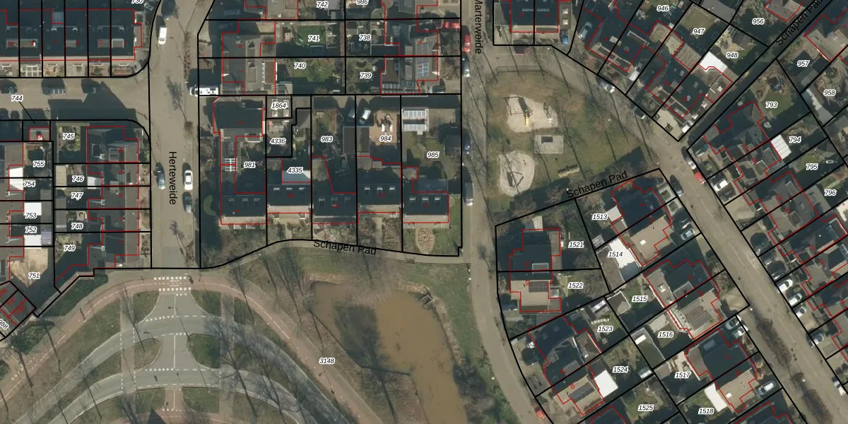 Het perceel waarop Marterweide 9 staat heeft een oppervlakte van 534 m². Dit is een groot perceel. De perceeloppervlakte wordt geregistreerd door het Kadaster. Gedetailleerde informatie over de maten van dit perceel kunt u vinden in het rapport Kadastrale kaart met maatvoering van Marterweide 9.