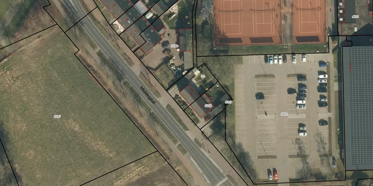 Het perceel waarop Middegaal 29 staat heeft een oppervlakte van 27,6 ha. Dit is een zeer groot perceel. De perceeloppervlakte wordt geregistreerd door het Kadaster. Gedetailleerde informatie over de maten van dit perceel kunt u vinden in het rapport Kadastrale kaart met maatvoering van Middegaal 29.