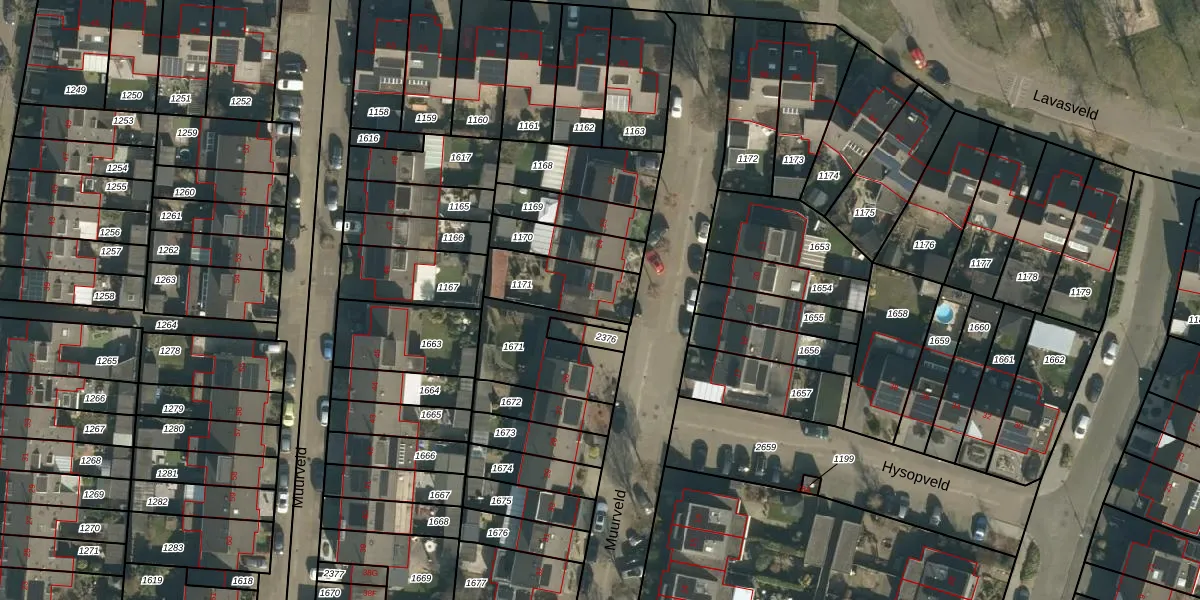 Het perceel waarop Muurveld 25 staat heeft een oppervlakte van 216 m². Dit is een middelgroot perceel. De perceeloppervlakte wordt geregistreerd door het Kadaster. Gedetailleerde informatie over de maten van dit perceel kunt u vinden in het rapport Kadastrale kaart met maatvoering van Muurveld 25.