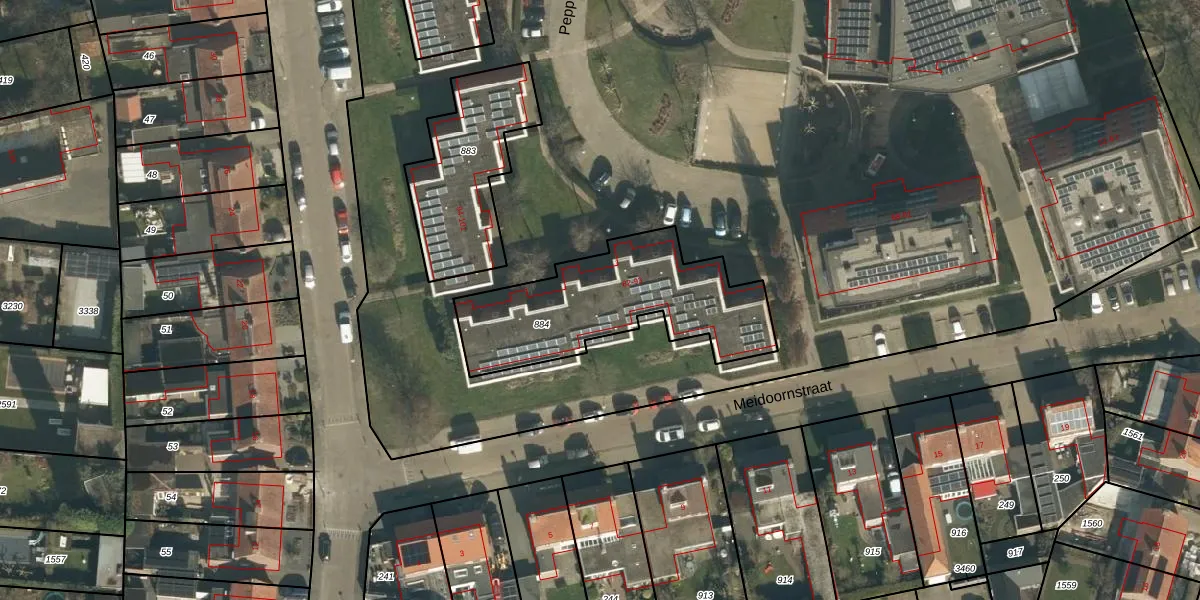Het perceel waarop Peppelhof 88 staat heeft een oppervlakte van 729 m². Dit is een groot perceel. De perceeloppervlakte wordt geregistreerd door het Kadaster. Gedetailleerde informatie over de maten van dit perceel kunt u vinden in het rapport Kadastrale kaart met maatvoering van Peppelhof 88.