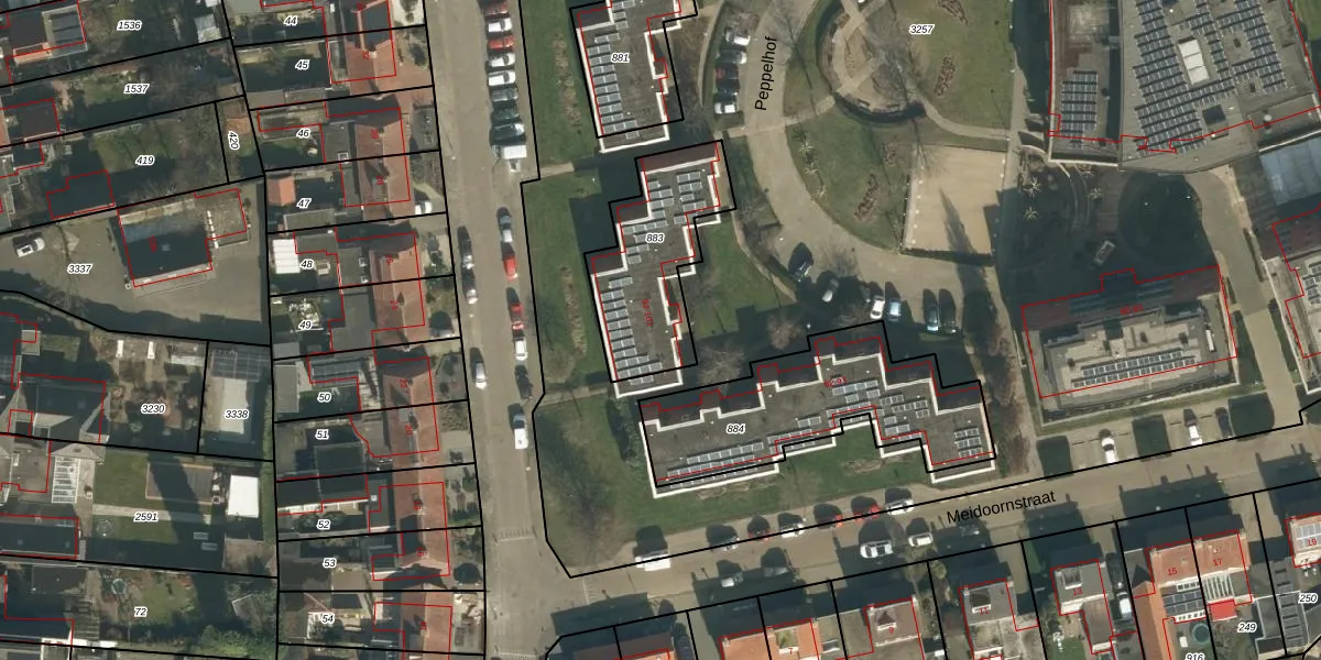 Het perceel waarop Peppelhof 95 staat heeft een oppervlakte van 478 m². Dit is een groot perceel. De perceeloppervlakte wordt geregistreerd door het Kadaster. Gedetailleerde informatie over de maten van dit perceel kunt u vinden in het rapport Kadastrale kaart met maatvoering van Peppelhof 95.