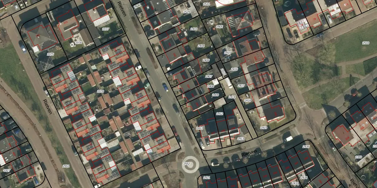 Rietven 165 is gelegen op kadastraal perceel VHL00L2408. Deze kadastrale aanduiding is uniek en wordt gebruikt door het Kadaster om eigendomsrechten en andere zakelijke rechten vast te leggen. Het perceel maakt onderdeel uit van de kadastrale gemeente Veghel.