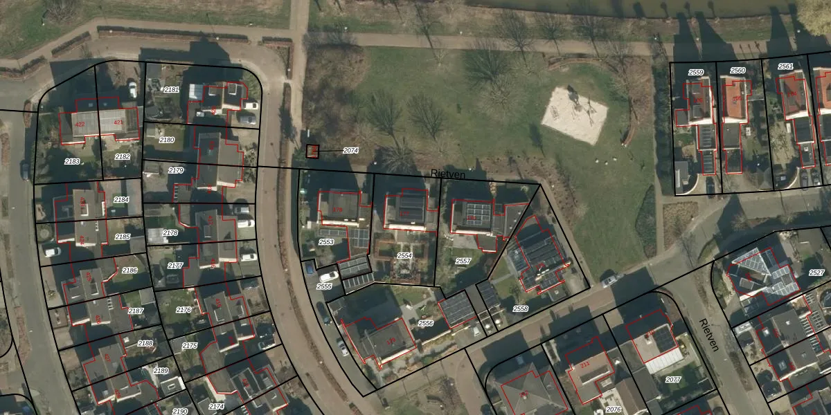 Rietven 177 is gelegen op kadastraal perceel VHL00L2554. Deze kadastrale aanduiding is uniek en wordt gebruikt door het Kadaster om eigendomsrechten en andere zakelijke rechten vast te leggen. Het perceel maakt onderdeel uit van de kadastrale gemeente Veghel.