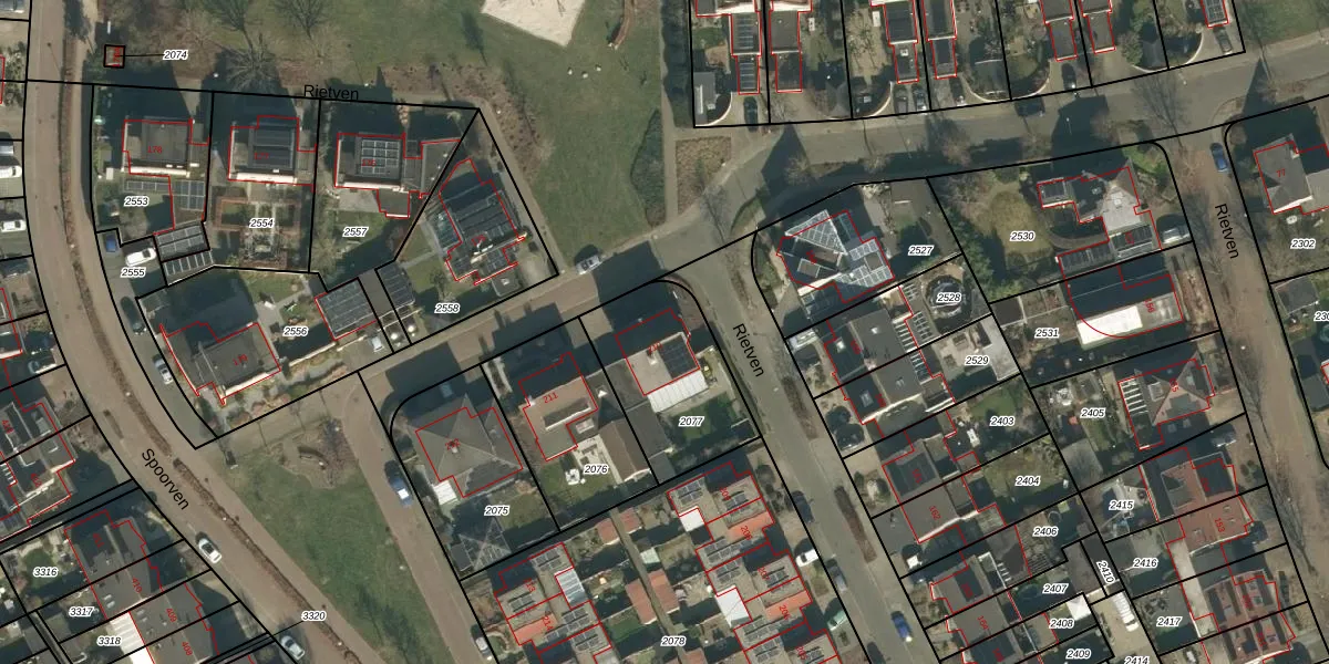 Het perceel waarop Rietven 210 staat heeft een oppervlakte van 473 m². Dit is een groot perceel. De perceeloppervlakte wordt geregistreerd door het Kadaster. Gedetailleerde informatie over de maten van dit perceel kunt u vinden in het rapport Kadastrale kaart met maatvoering van Rietven 210.