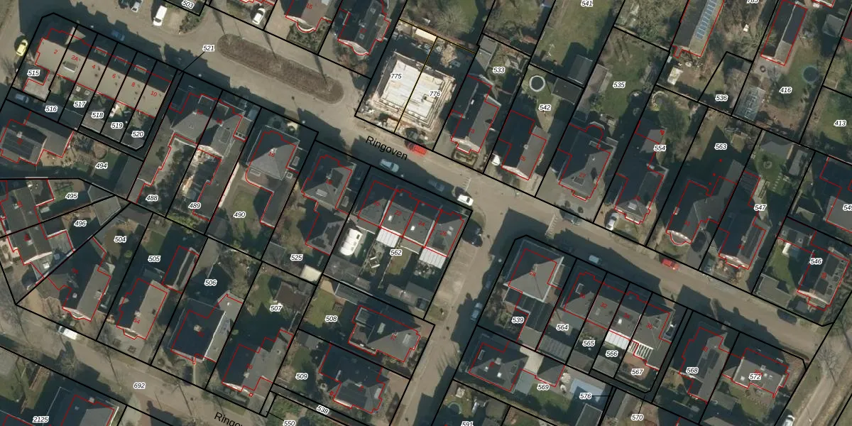 Het perceel waarop Ringoven 24 staat heeft een oppervlakte van 730 m². Dit is een groot perceel. De perceeloppervlakte wordt geregistreerd door het Kadaster. Gedetailleerde informatie over de maten van dit perceel kunt u vinden in het rapport Kadastrale kaart met maatvoering van Ringoven 24.