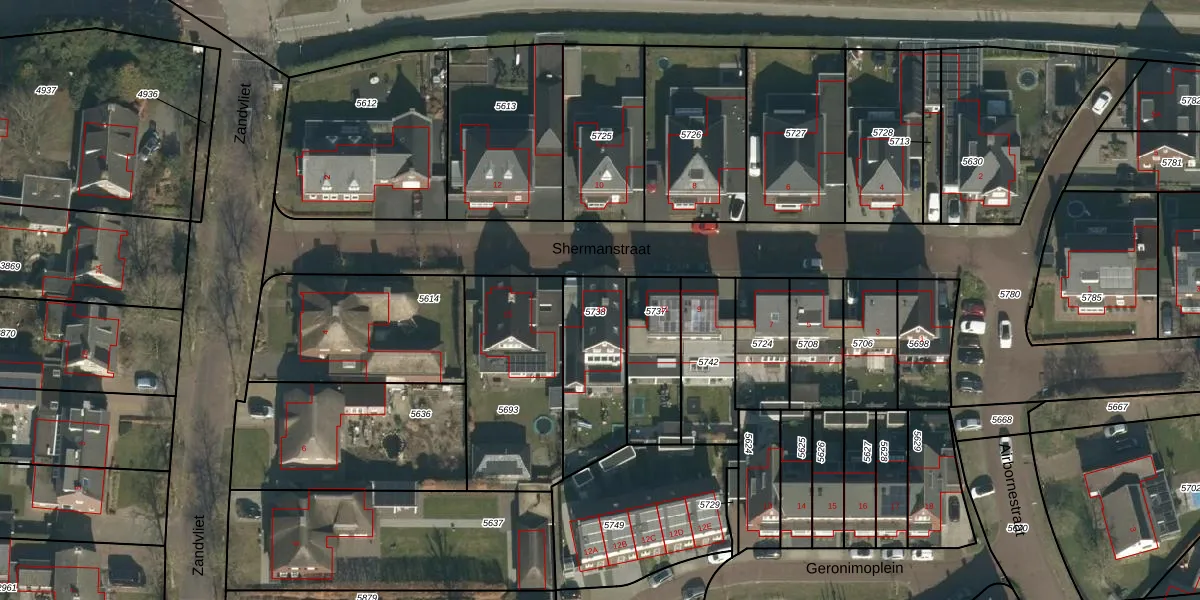 Het perceel waarop Shermanstraat 13 staat heeft een oppervlakte van 326 m². Dit is een groot perceel. De perceeloppervlakte wordt geregistreerd door het Kadaster. Gedetailleerde informatie over de maten van dit perceel kunt u vinden in het rapport Kadastrale kaart met maatvoering van Shermanstraat 13.