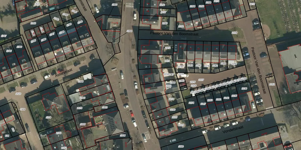 Het adres ligt op het perceel VHL00-H-2218, dat zich in de kadastrale gemeente Veghel bevindt. De gemiddelde perceelgrootte in Veghel is 2502,8 m². Dit perceel is kleiner: de perceeloppervlakte bedraagt 222 m². Het kleinste perceel in de kadastrale gemeente is 0 m² groot. De grootste perceeloppervlakte is 27,6 ha. Dit is het enige adres dat aanwezig is op het perceel. De laatste wijziging in het de Basisregistratie Kadaster (BRK) was op 23-08-2021.