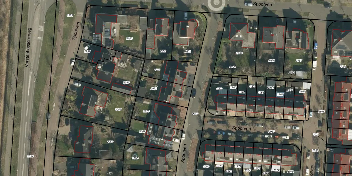 Het perceel waarop Spoorven 19 staat heeft een oppervlakte van 359 m². Dit is een groot perceel. De perceeloppervlakte wordt geregistreerd door het Kadaster. Gedetailleerde informatie over de maten van dit perceel kunt u vinden in het rapport Kadastrale kaart met maatvoering van Spoorven 19.