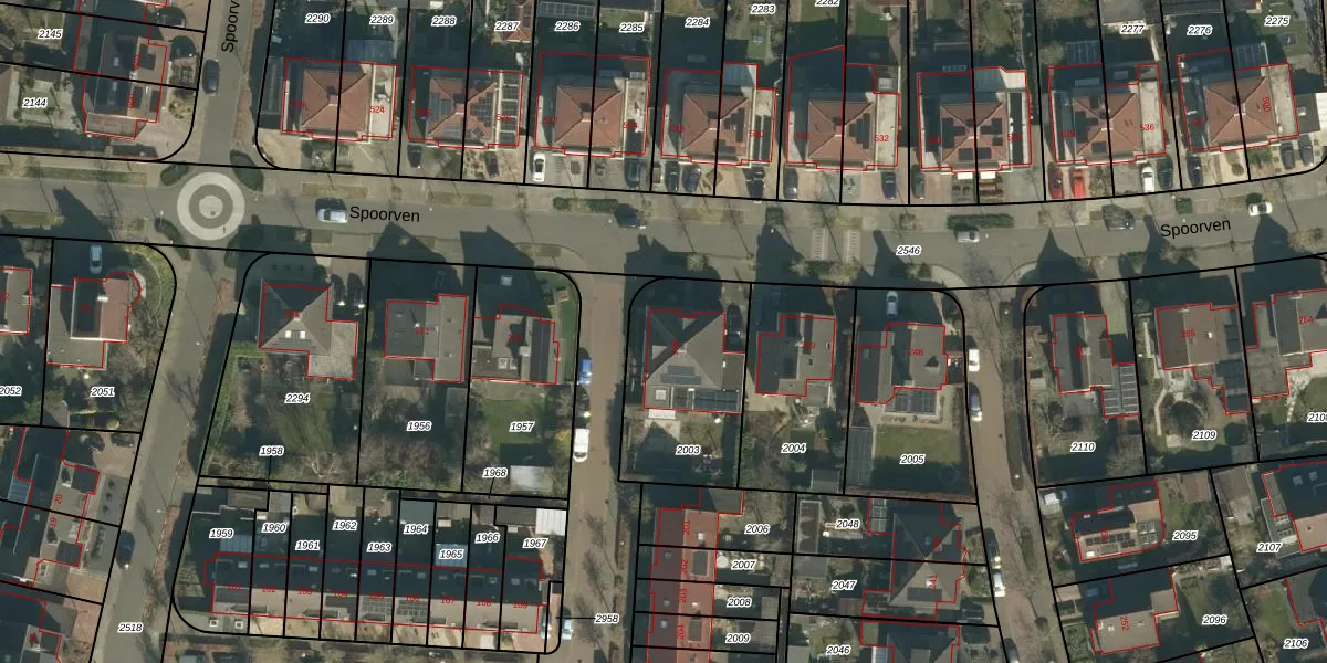 Het perceel waarop Spoorven 200 staat heeft een oppervlakte van 553 m². Dit is een groot perceel. De perceeloppervlakte wordt geregistreerd door het Kadaster. Gedetailleerde informatie over de maten van dit perceel kunt u vinden in het rapport Kadastrale kaart met maatvoering van Spoorven 200.