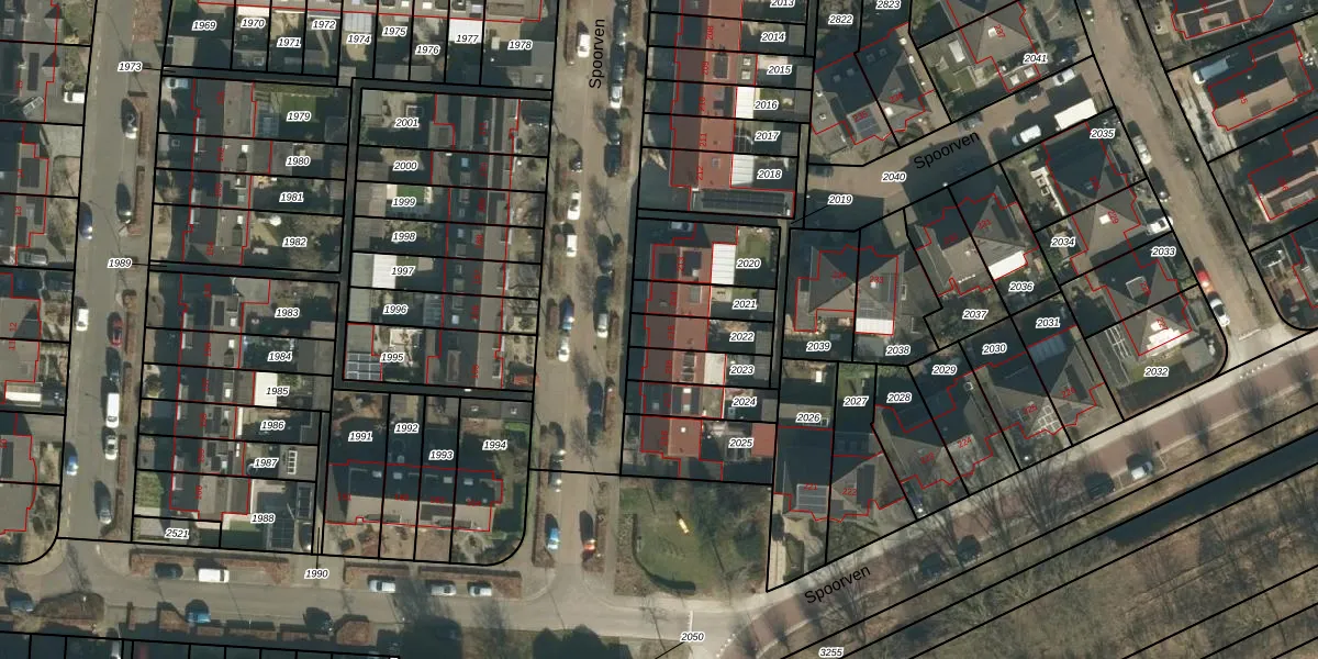 Het perceel waarop Spoorven 215 staat heeft een oppervlakte van 111 m². Dit is een middelgroot perceel. De perceeloppervlakte wordt geregistreerd door het Kadaster. Gedetailleerde informatie over de maten van dit perceel kunt u vinden in het rapport Kadastrale kaart met maatvoering van Spoorven 215.
