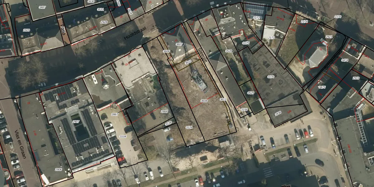 Het perceel waarop Steegje 1-22 staat heeft een oppervlakte van 686 m². Dit is een groot perceel. De perceeloppervlakte wordt geregistreerd door het Kadaster. Gedetailleerde informatie over de maten van dit perceel kunt u vinden in het rapport Kadastrale kaart met maatvoering van Steegje 1-22.