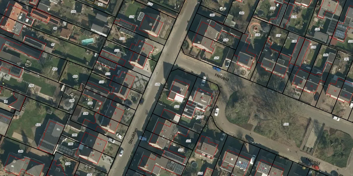 Het perceel waarop Struikhei 13 staat heeft een oppervlakte van 443 m². Dit is een groot perceel. De perceeloppervlakte wordt geregistreerd door het Kadaster. Gedetailleerde informatie over de maten van dit perceel kunt u vinden in het rapport Kadastrale kaart met maatvoering van Struikhei 13.