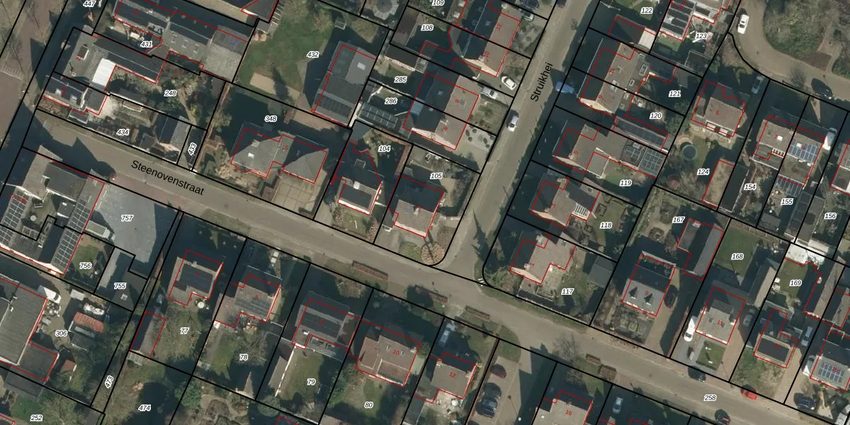 Het perceel waarop Struikhei 2 staat heeft een oppervlakte van 422 m². Dit is een groot perceel. De perceeloppervlakte wordt geregistreerd door het Kadaster. Gedetailleerde informatie over de maten van dit perceel kunt u vinden in het rapport Kadastrale kaart met maatvoering van Struikhei 2.