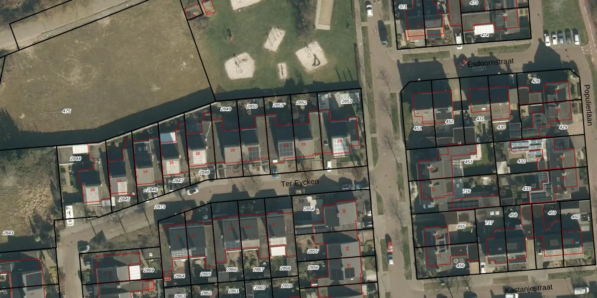 Ter Eycken 26 is gelegen op kadastraal perceel VHL00K2852. Deze kadastrale aanduiding is uniek en wordt gebruikt door het Kadaster om eigendomsrechten en andere zakelijke rechten vast te leggen. Het perceel maakt onderdeel uit van de kadastrale gemeente Veghel.