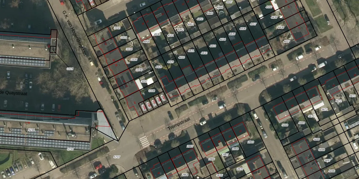 Het perceel waarop Trompstraat 17 staat heeft een oppervlakte van 180 m². Dit is een middelgroot perceel. De perceeloppervlakte wordt geregistreerd door het Kadaster. Gedetailleerde informatie over de maten van dit perceel kunt u vinden in het rapport Kadastrale kaart met maatvoering van Trompstraat 17.