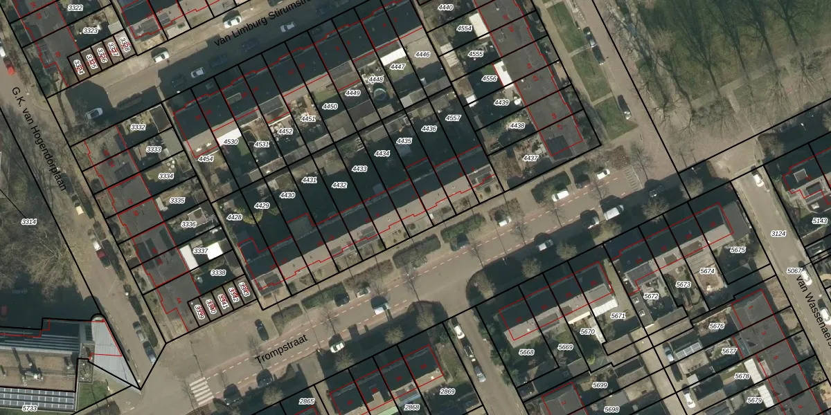 Het perceel waarop Trompstraat 7 staat heeft een oppervlakte van 180 m². Dit is een middelgroot perceel. De perceeloppervlakte wordt geregistreerd door het Kadaster. Gedetailleerde informatie over de maten van dit perceel kunt u vinden in het rapport Kadastrale kaart met maatvoering van Trompstraat 7.