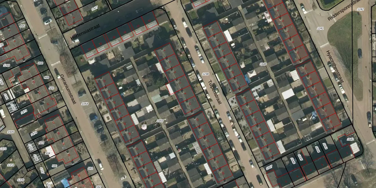 Tulpenstraat 9 is gelegen op kadastraal perceel VHL00H1655. Deze kadastrale aanduiding is uniek en wordt gebruikt door het Kadaster om eigendomsrechten en andere zakelijke rechten vast te leggen. Het perceel maakt onderdeel uit van de kadastrale gemeente Veghel.